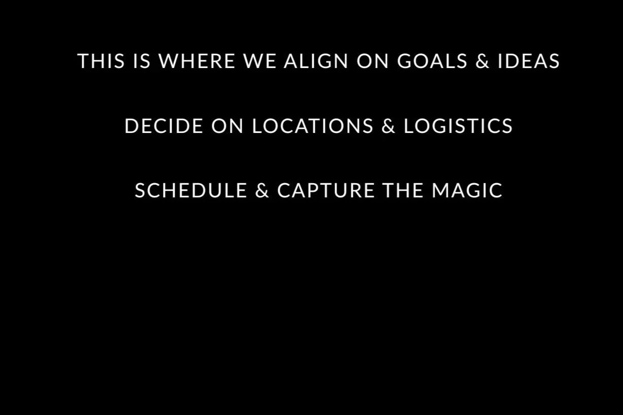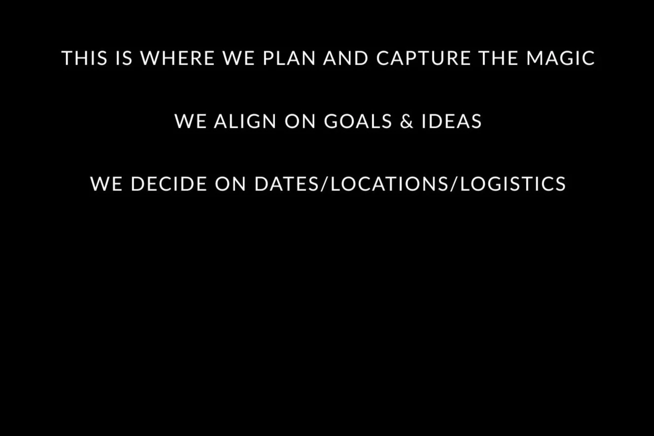 This is where we align on goals & ideas. Decide on locations & logistics