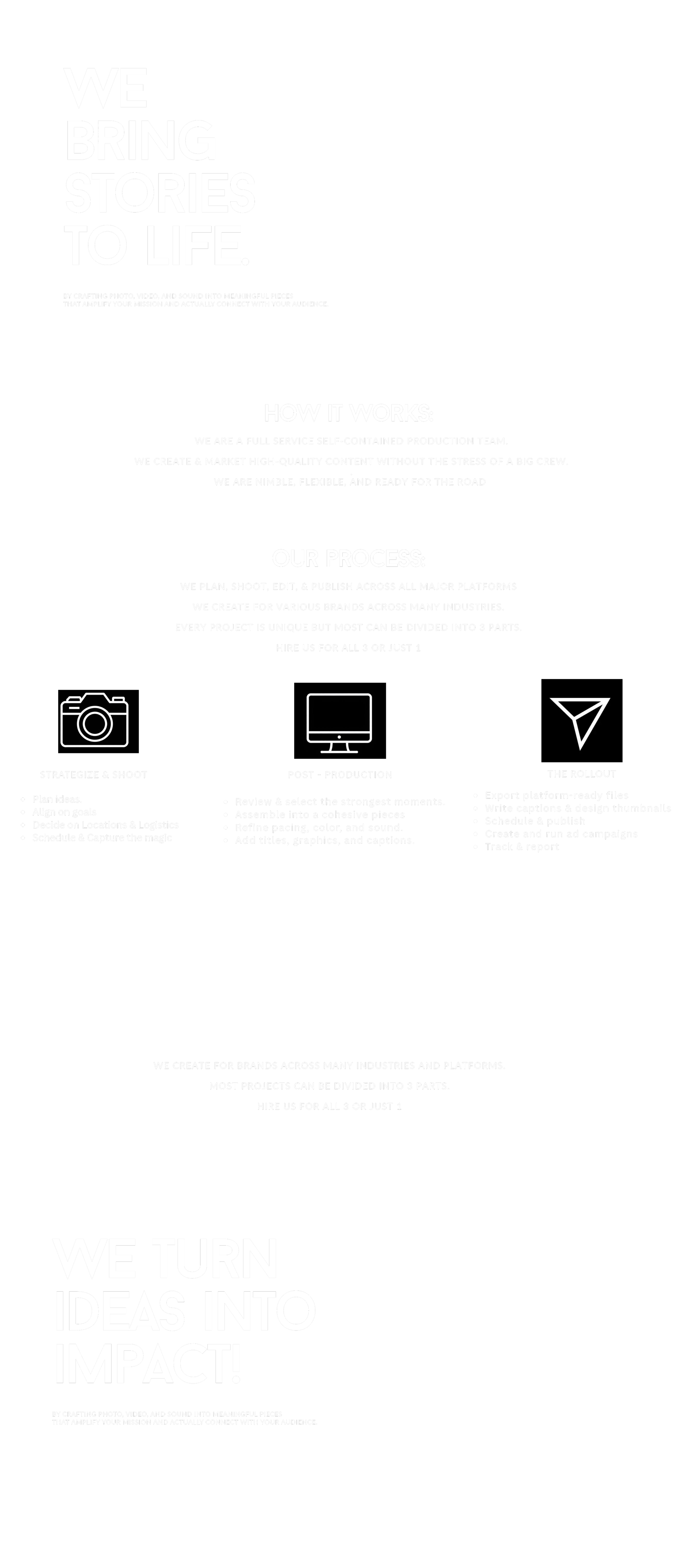 by crafting photo, video, and sound into meaningful pieces that amplify your mission and actually connect with your audience.